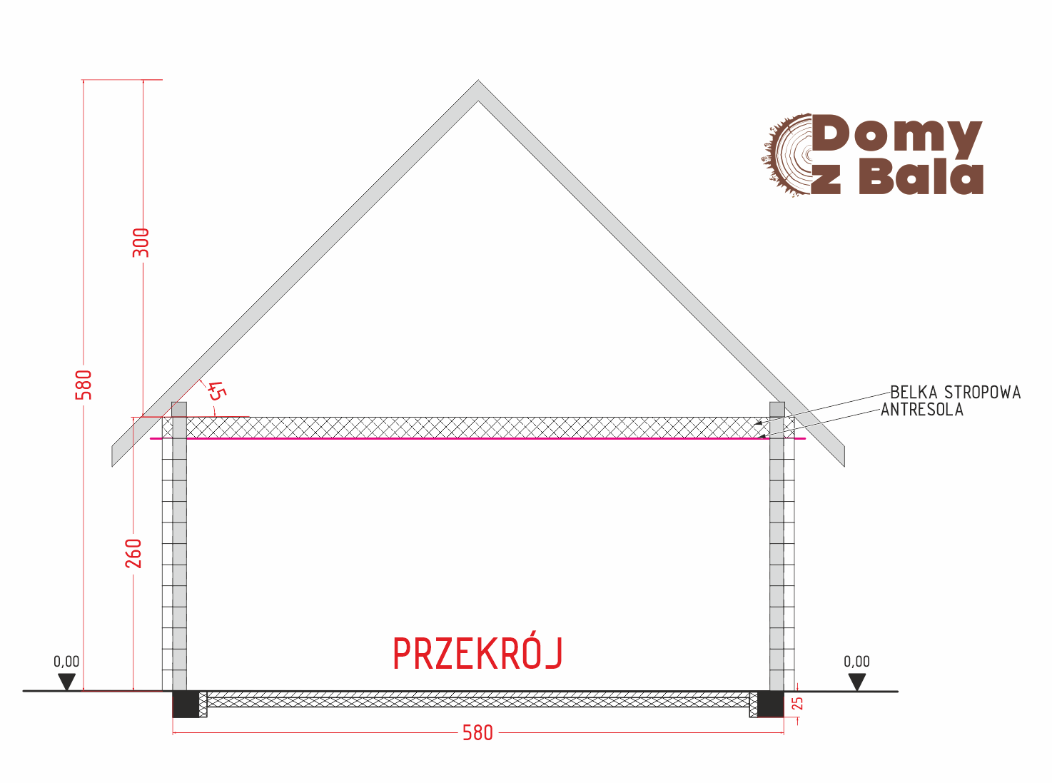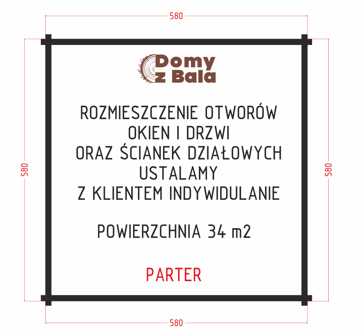 Wymiar zewnętrzny 580 x 580 cm – 34m2 – Domek na zgłoszenie
