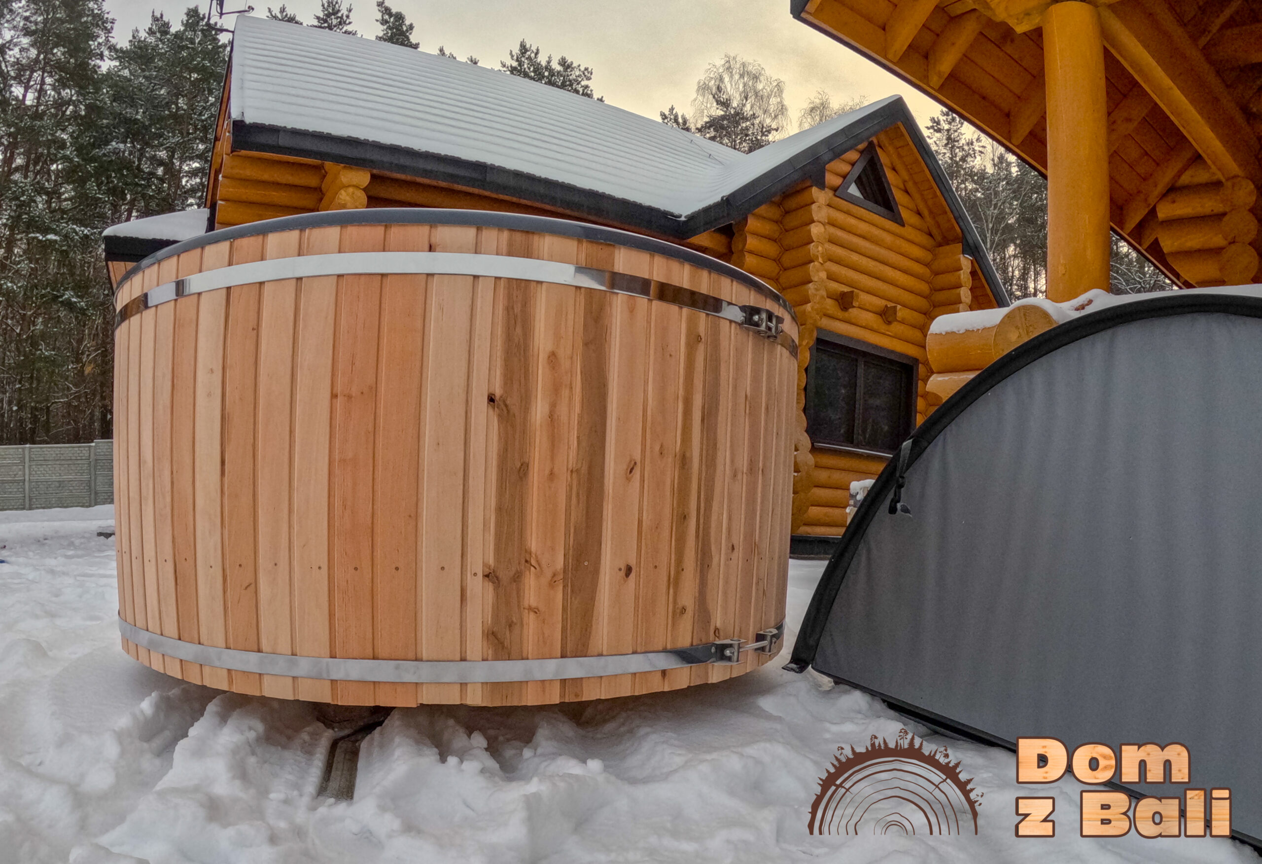 Świetnie nadaje się jako wanna do ogrodu, idealna do sauny, ruskiej bani, wykorzystywana w zimie do morsowania.